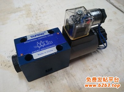 山东泰丰智能控制股份有限公司(原山东泰丰液压股份有限公司)生产的4we6型电磁换向阀是用电磁铁直接推动阀芯移位工作的小型方向控制阀,主要用于控制液体的通断和流动方向,也可以作为先导控制阀,以控制各种大通径的液压阀(电液换向阀或二通插装阀),实现对大功率液压阀的先导控制。其特点是:1.以直动式电磁铁操作方向滑阀作为标准类型;2.安装面符合DIN24340A型ISO4401和CETOP-RP121H;3.带可拆卸线圈的湿式直流获交流电磁铁;4.电磁铁可旋转90度;5.可以迅速而方便的更换电磁铁线圈而不引起液压系统漏油;6.可选的手动应急操作